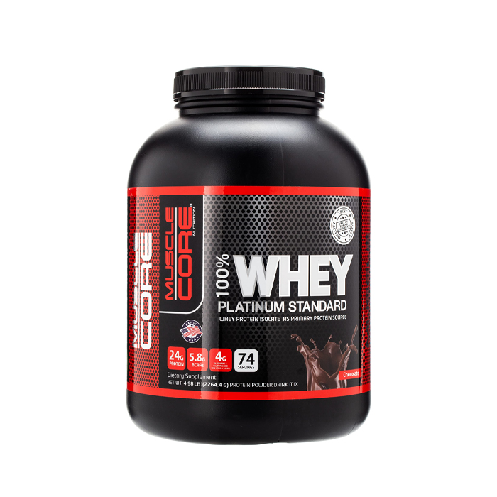مكمل غذائي واي بلاتينيوم 100% ستاندرد وزن 5 رطل بنكهة الشوكولاتة من ماسل كور