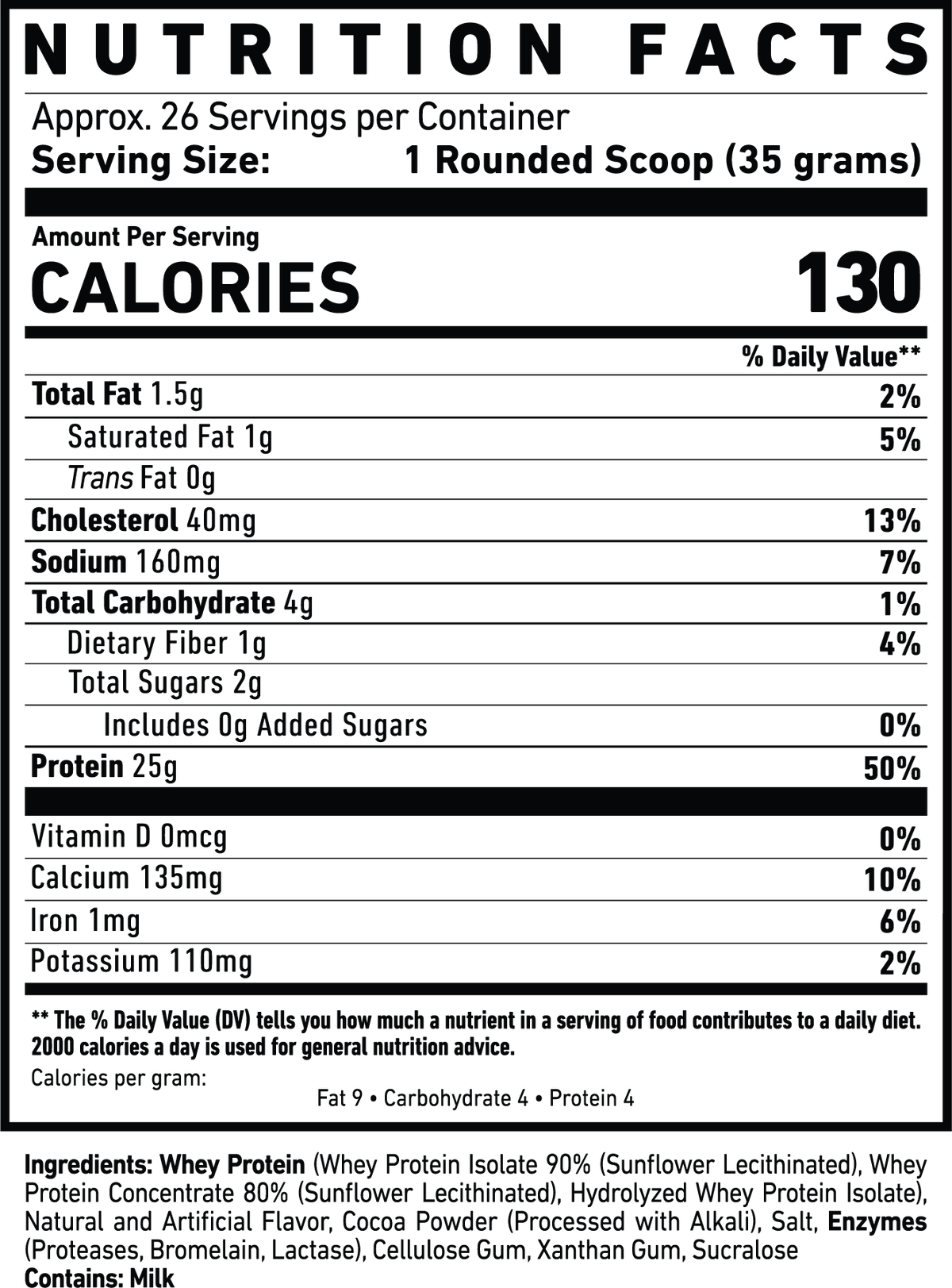 - 2LB tub 25g+ protein per scoop from whey isolate, concentrate & hydrolysate