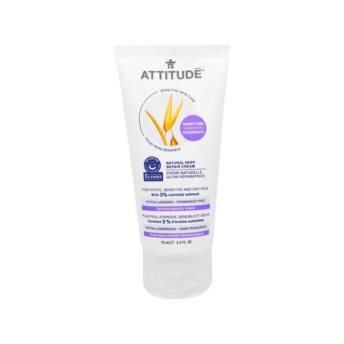 • ATTITUDE's Natural Deep Repair Cream, composed of 3% colloidal oatmeal, provides effective hydrating therapeutic treatment thanks to its rich and protective emollients.