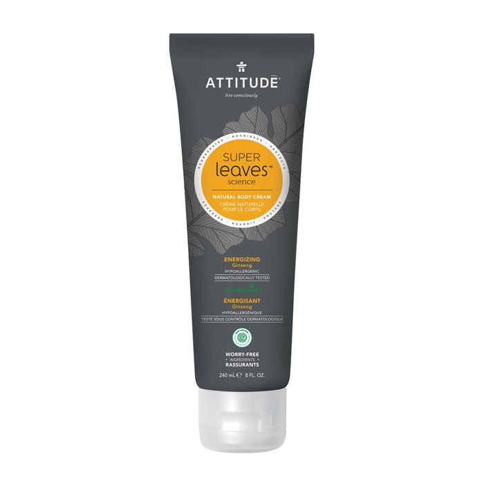 First discovered over 5,000 years ago in Manchuria, ginseng is known for its energizing and tonifying properties. Care for your skin with ATTITUDE's Super leaves Energizing Body Cream, enriched with ginseng extract and antioxidant-rich grapeseed oil. Featuring a lighter texture formulated just for men's skin, our Energizing Body Cream will moisturize your skin and energize your mind! You will also love its robust aroma that reminds us of white cedarwood, neroli, and bergamot. EWG Verified hypoallergenic and dermatologically-tested, our cream includes moringa seed extract, known for its antipollution properties. Put the power of nature to work to give you healthy and glowing skin!