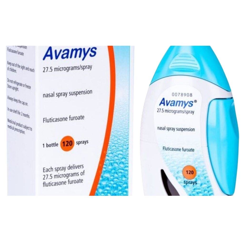 Avamys 27.5 mcg Nasal Spray Suspension is a corticosteroid medication containing fluticasone furoate used to treat allergic rhinitis, providing relief from symptoms such as nasal congestion, sneezing, itching, and a runny nose caused by allergens like pollen, dust, or pet dander.