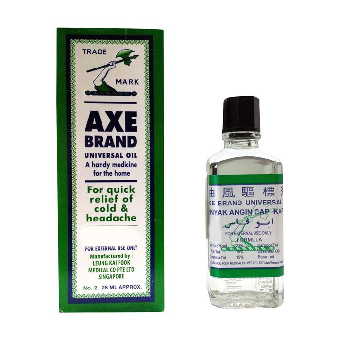 Axe Brand Universal Oil 28 ml Condition: NEW In Box, Sealed Original Packing Volume,28ml per bottle. Axe Brand Universal Oil (also known as Axe Brand Medicated Oil in some countries) is made from a unique formula and has been used throughout the world for nearly 60 years. It is pure in color, pleasant in odour. It is mild yet suitable for use by both adults and children for relief of giddiness, headaches, travel sickness, stomach-ache, insect bites, rheumatic pain, muscular pain, blocked nose and cold.