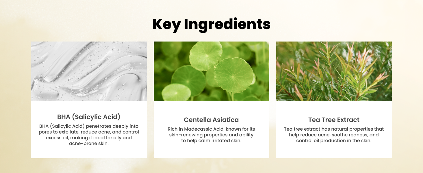 • Centella Asiatica & Tea Tree: Promotes healing and reduces redness.