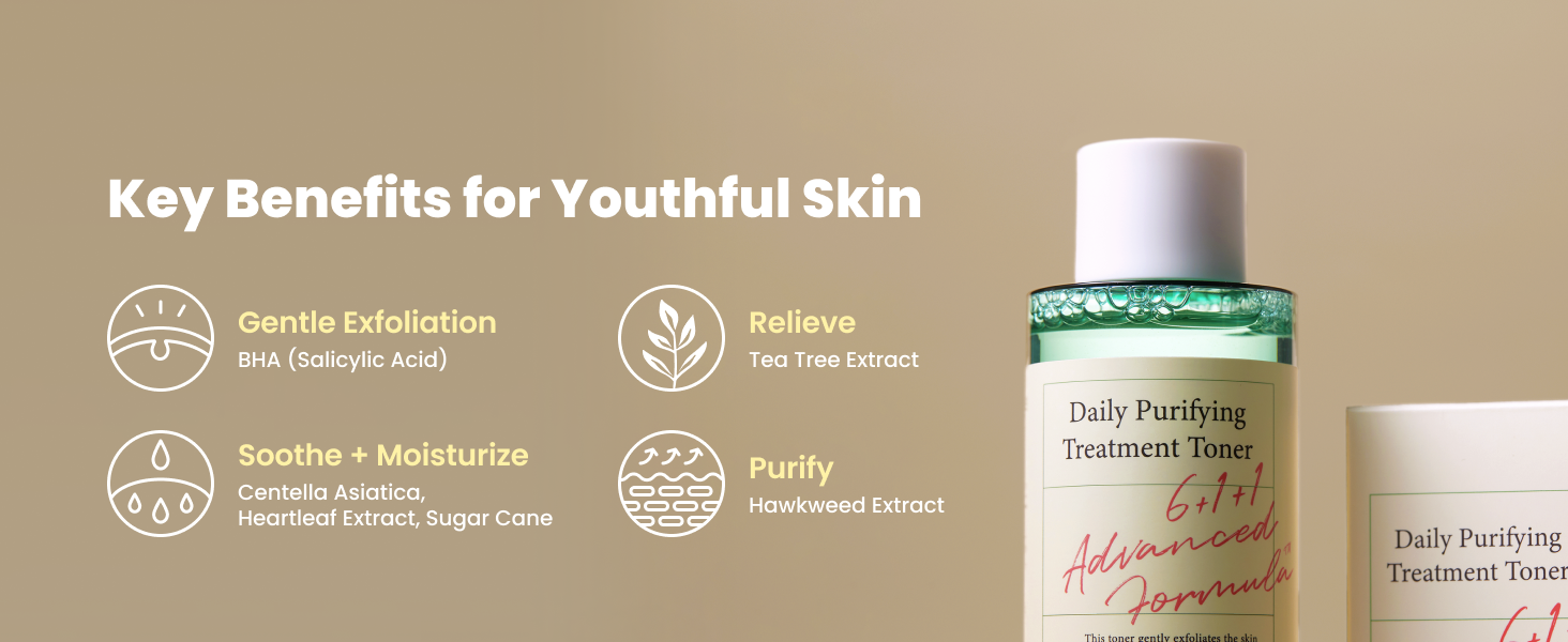 Purify, balance, and soothe your skin daily with Axis-Y Daily Purifying Treatment Toner. Infused with Centella Asiatica & Tea Tree, this 6+1+1 formula targets acne, minimizes pores, and calms irritation. Perfect for oily, acne-prone, and sensitive skin types.