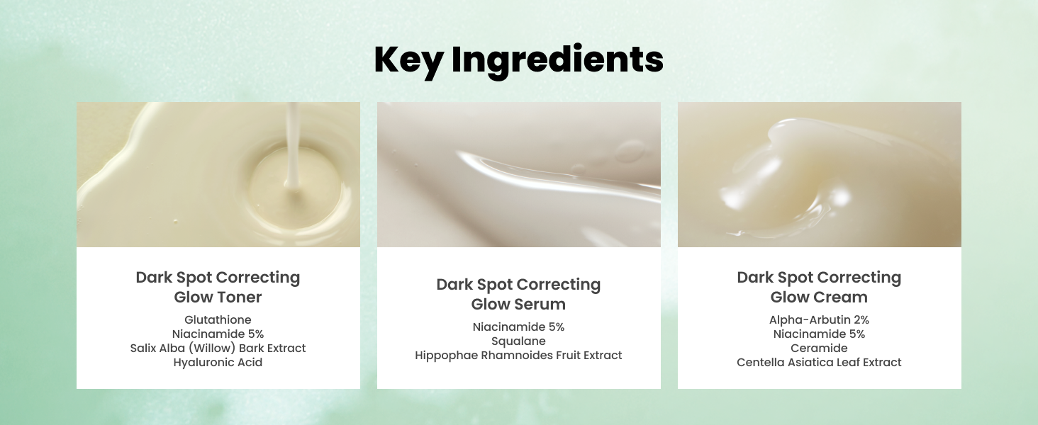 Your glow isn’t gone — it’s just waiting to be revealed. The Glow Perfecting Trio was designed to help you do just that, with a 3-step routine that targets dark spots, post-acne marks, dullness, and uneven tone, while strengthening your skin barrier from the inside out.