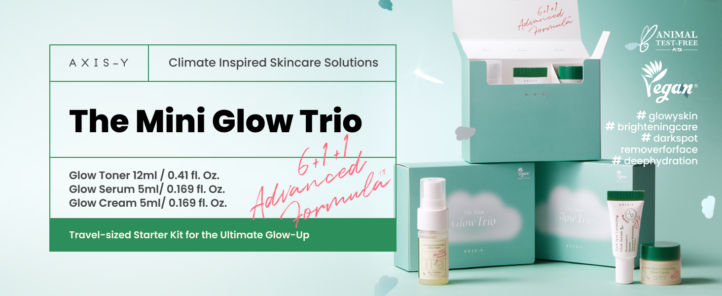Glow wherever you go with Axis-Y The Mini Glow Trio Set! This 3-piece travel-size skincare kit features the bestselling serum, ampoule, and moisturizer to brighten, hydrate, and smooth skin. Ideal for all skin types. Vegan, cruelty-free, and perfect for gifting or trial use.