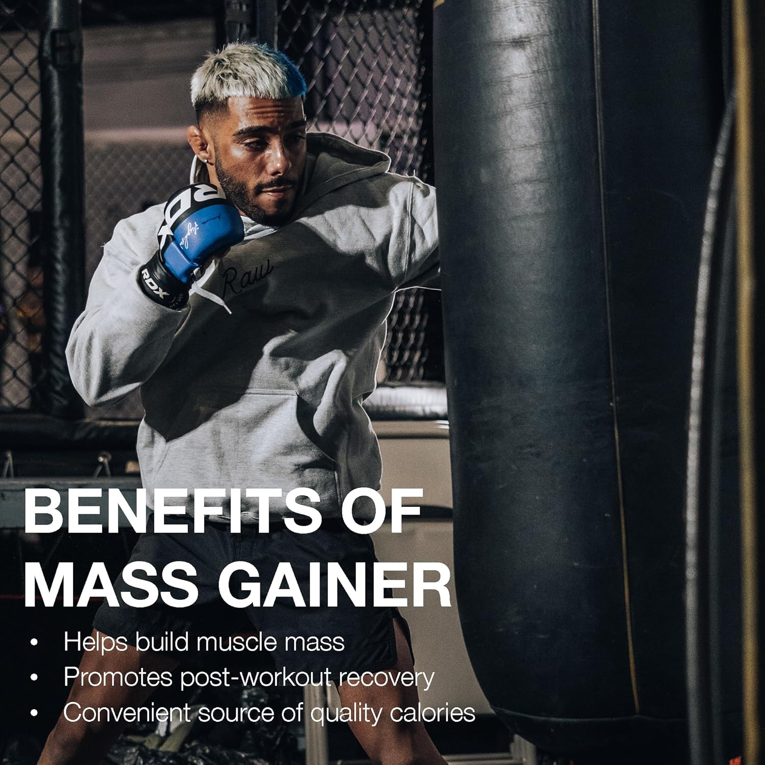 - High-calorie mass gainer formula designed to support muscle-building goals