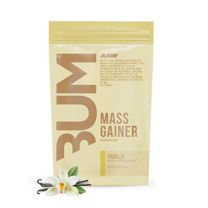 RAW Nutrition Bum Mass Gainer Vanilla 12lb is a high-calorie mass gainer designed to support individuals aiming to increase calorie intake and build muscle mass as part of structured training programs. Each serving delivers high-quality protein along with complex carbohydrates, helping supply the body with essential macronutrients needed to support recovery and sustained energy levels during intense training periods. This supplement can help individuals who struggle to meet their daily calorie requirements through regular meals alone.