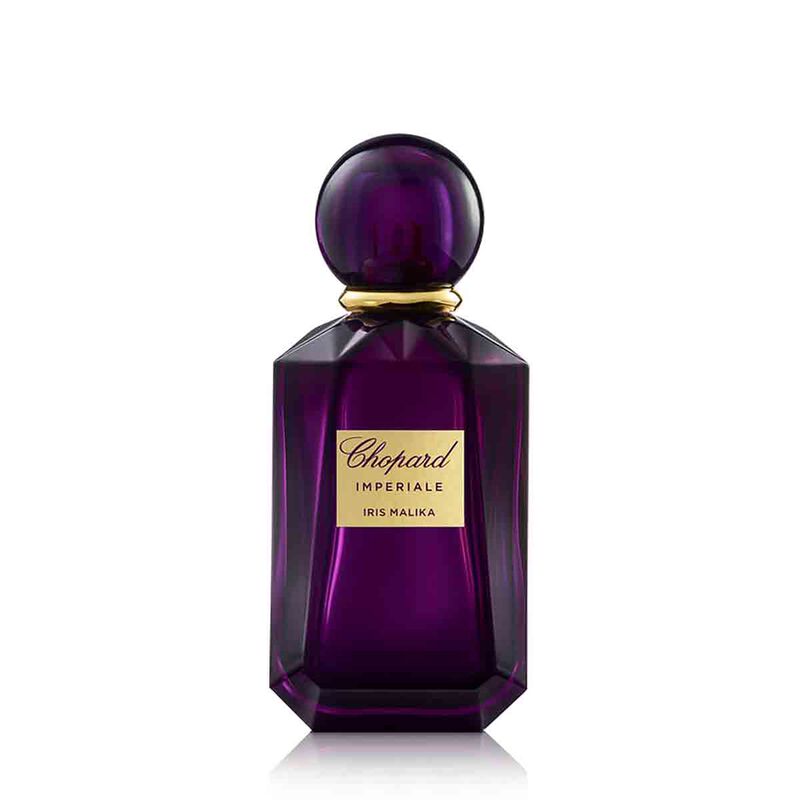 Chopard Imperiale Iris Malika, the essence of a queen. Iris Malika is the olfactory complement of the Chopard Imperiale Collection, exquisite jewels created for powerful women, who are modern-day empresses. Iris Malika embodies the quintessence of two cultures that blend harmoniously. Mirroring the purple bottle and the amethyst-adorned jewels from the Imperiale Collection, iris, the eternal ingredient of French perfumery, is enveloped in Middle Eastern sensuality. The fragrance opens with addictive notes of wild berries and warm, mysterious spices. The heart of the perfume unleashes an imperial floral bouquet: the noblest iris concrete enfolded in jasmine and ylang ylang. The base is enriched with opulent balms, spices and woods, ethically sourced from around the world.