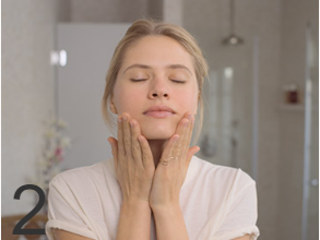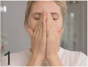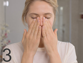 Pressure : Apply a light draining pressure on the cheeks, forehead and neck. Apply a relaxing pressure to the side of the face and the temple area. {10 seconds}