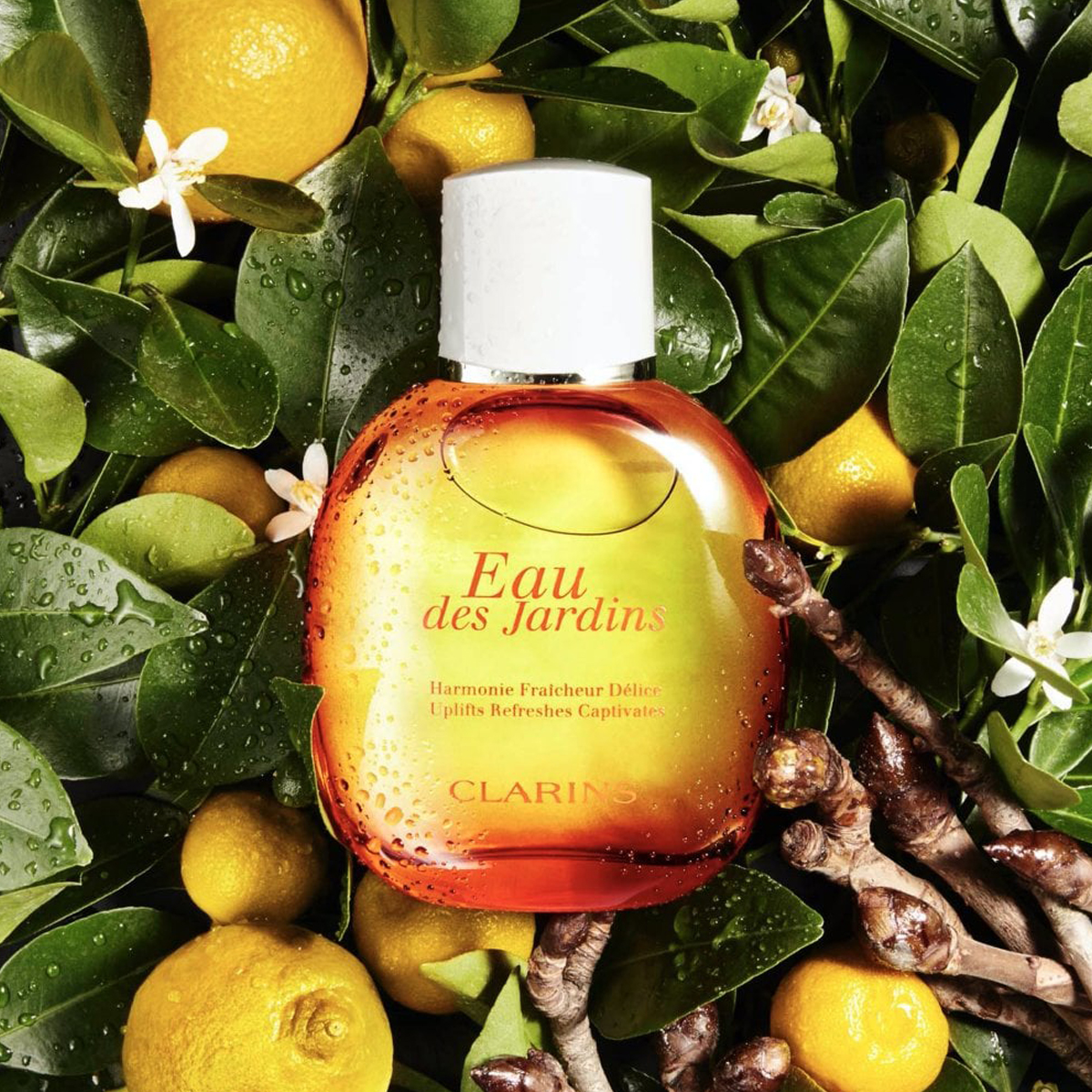 The iconic Clarins Eau Dynamisante comes in the floral and uplifting Eau des Jardins. This Treatment Fragrance is made of 93% natural ingredients and inspires joy. It is perfect for chasing away gloom and boosting energy levels in the morning. The stimulating zest of the lemon, orange and grapefruit top notes flood the skin with freshness. Heart notes of bay leaf, spearmint and geranium, combined with the balancing notes of cedar, then offer a beautiful sensation of joy and lightness. Radiance-boosting organic rowan bud extract blended with soothing organic blackcurrant bud extract leaves the skin glowing. Its green bottle is a celebration of nature.
