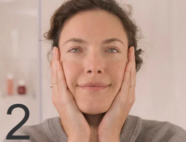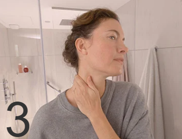 Drain: Apply draining pressure 3 times on the cheeks, 3 times on the forehead, 3 times on each side of the neck. {15 seconds}