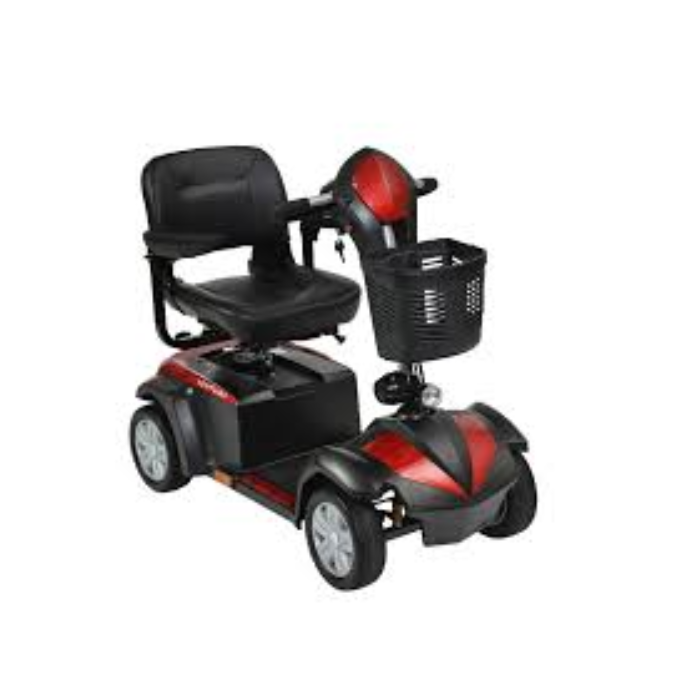 The Ventura 4 Wheel Standard Scooter offers a great combination of performance, size, comfort, and styling, making it the perfect mobility option for those seeking the “next step up” from compact/travel scooters. The Ventura’s four-wheel configuration is great for stability and handling on rougher outdoor terrain and the performance makes it perfect for longer trips around the neighborhood or around town. The Ventura 4 Wheel Standard Scooter features 20AH batteries, a folding “stadium-style” seat and a headlight. Users can even change the Ventura’s color with included color change panels in red and blue.