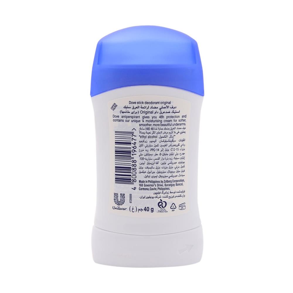 Caring formula : Dove Antiperspirant Deodorant Stick is formulated with ¼ moisturisers for underarm care using ¼ moisturising cream for beautifully soft and smooth underarms.