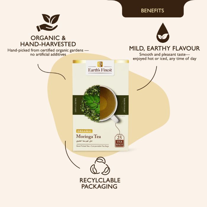 Earth’s Finest Organic Moringa Tea is made from the finest leaves harvested from tender organically grown Moringa Trees in the tropics of Sri Lanka. The finest leaves are handpicked and sun dried preserving its goodness and nutrition. Moringa is a Superfood that provides many health benefits and has been used in ancient Sri Lankan Ayurveda recipes for thousands of years.