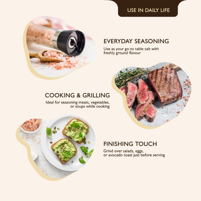 - FOR COOKING & SEASONING: As part of a healthy diet, pink Himalayan salt is a convenient staple to aid the flavouring of culinary dishes. Use for personal or professional use, this salt will improve and enhance your cooking.