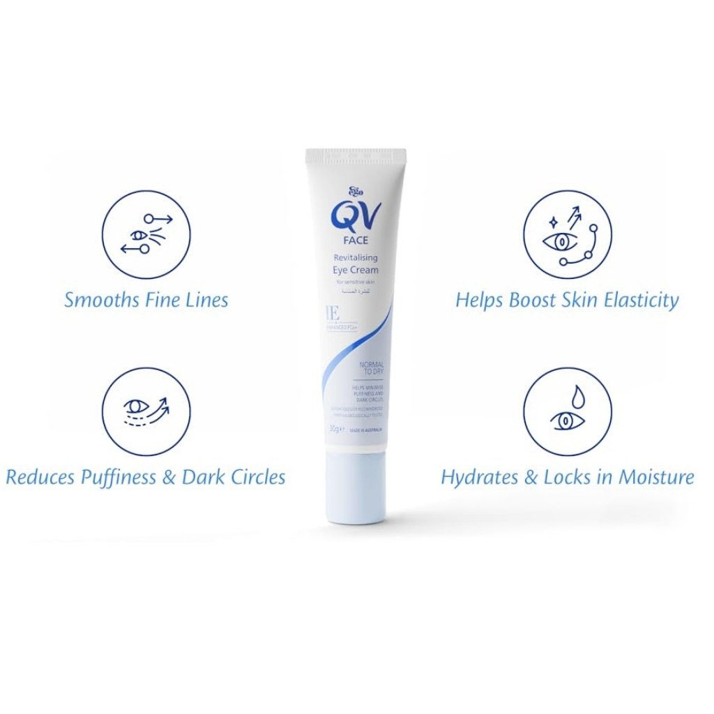 Ego QV Face Revitalising Eye Cream 30g is a lightweight, silky cream specially developed for the delicate skin around the eyes. With its advanced hydrating formula, this eye cream visibly reduces puffiness, dark circles, and fine lines, while improving elasticity for a firmer, more youthful appearance.