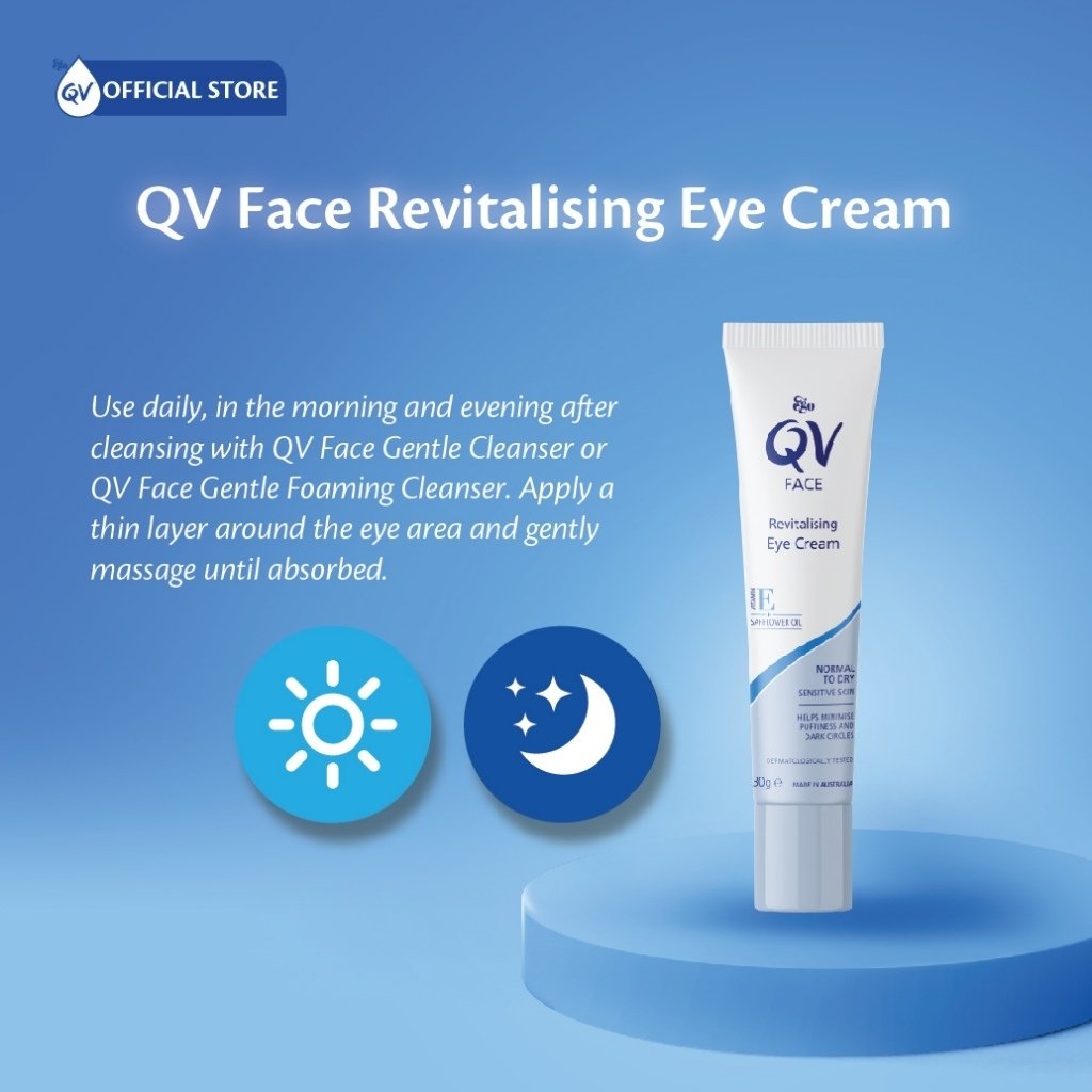 Dermatologically and ophthalmologically tested, it is suitable for all skin types, including dry and sensitive skin. The low-irritant formulation is free from fragrance, colour, lanolin, and propylene glycol, making it gentle enough for daily use. Its vegan-friendly formula ensures no animal-derived ingredients are included. Ideal for incorporating into your daily skincare routine, QV Face Revitalising Eye Cream rehydrates, smooths, and revitalises the delicate eye contour for fresher, brighter-looking skin.