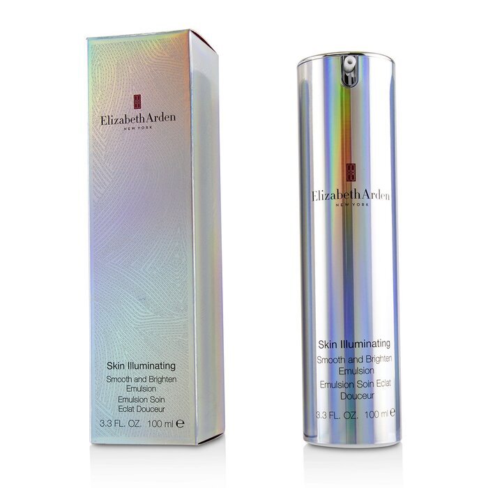 Elizabeth Arden Skin Illuminating Smooth and Brighten Emulsion is a sheer, silky lotion formulated with micro-fine Pearl Powder and other optical diffusers for an instant glow. Hyaluronic acid derivative and botanical extracts blend hydrate and help prevent moisture loss. A vitamin C derivative helps fight the appearance of dark spots and uneven skin tone. Skin appears clear, smooth, translucent.