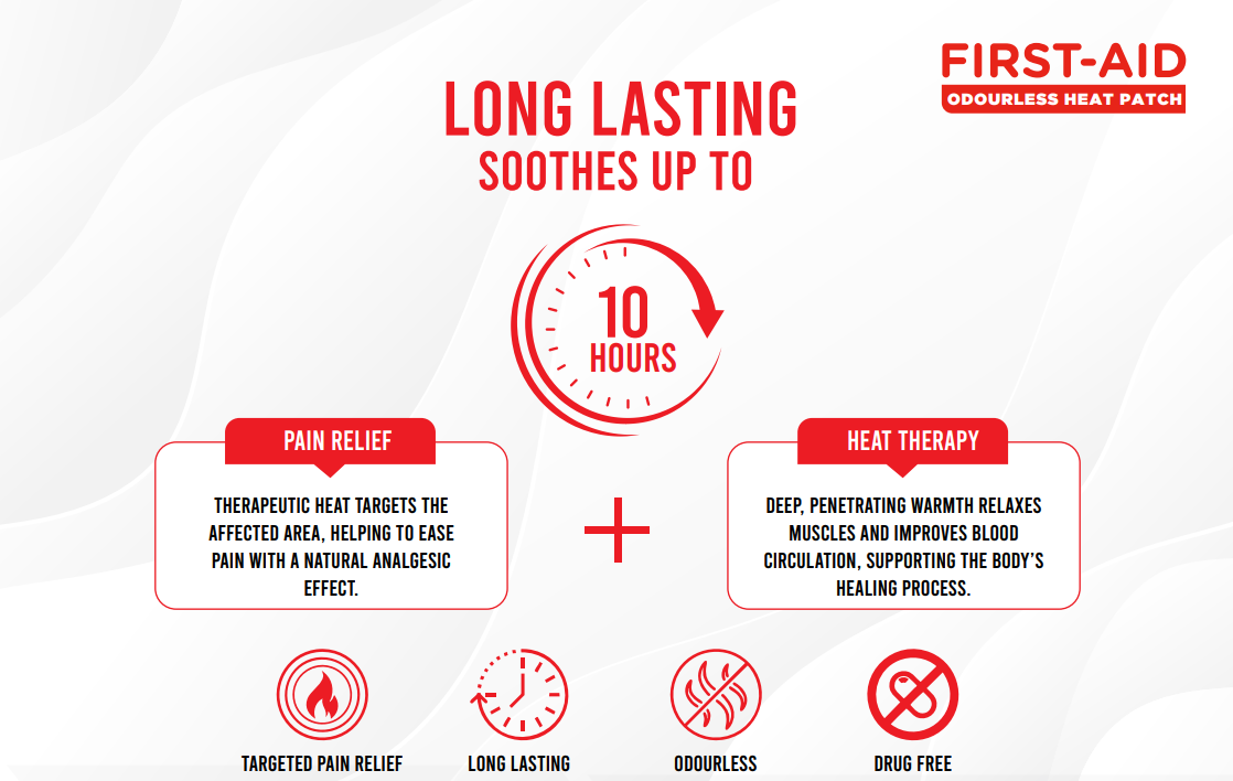 • First Aid Odourless Heat Patch improves blood circulation.
