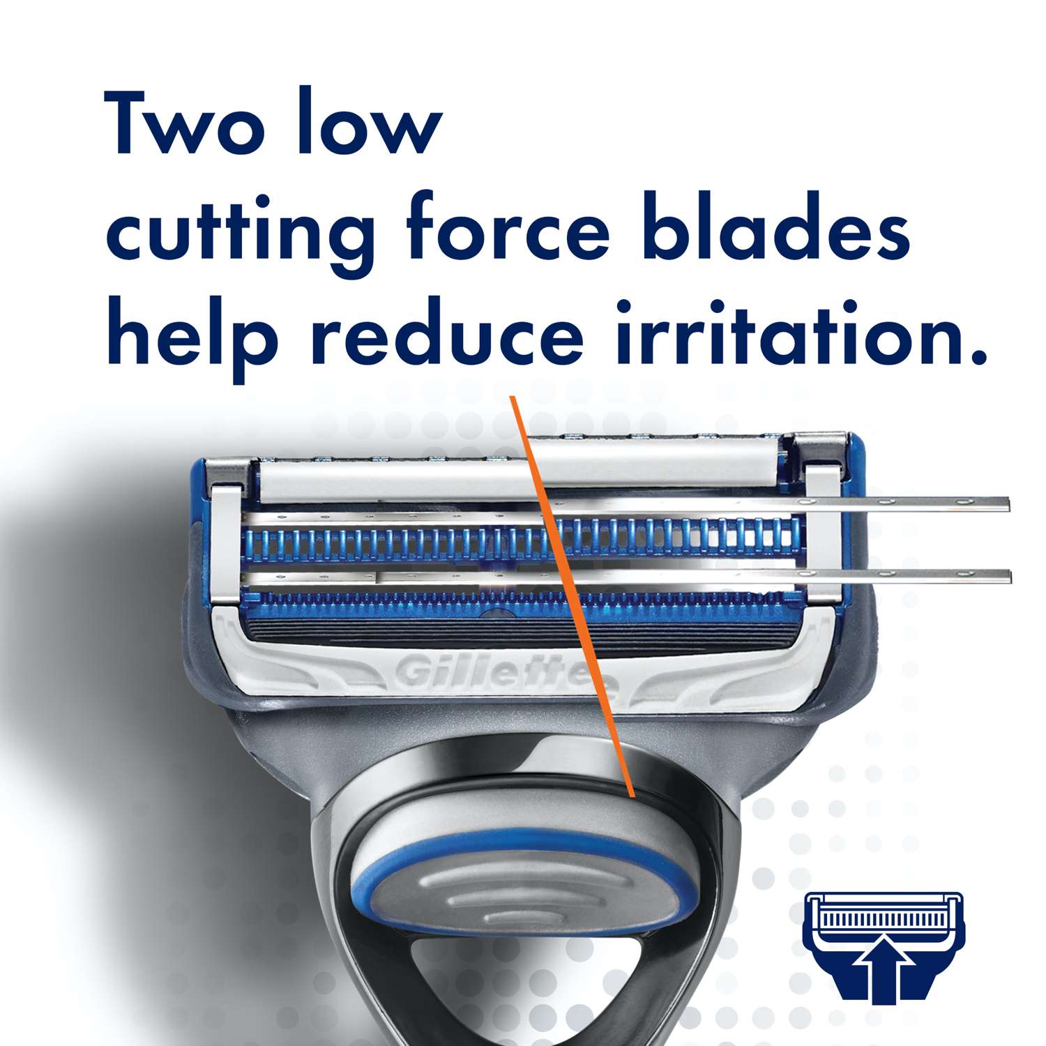 Gillette's first clinically proven razor designed for sensitive skin, with SkinGuard technology between the blades. Gillette SkinGuard men's blade refills have a unique SkinGuard between the blades to shave hair and guard skin.