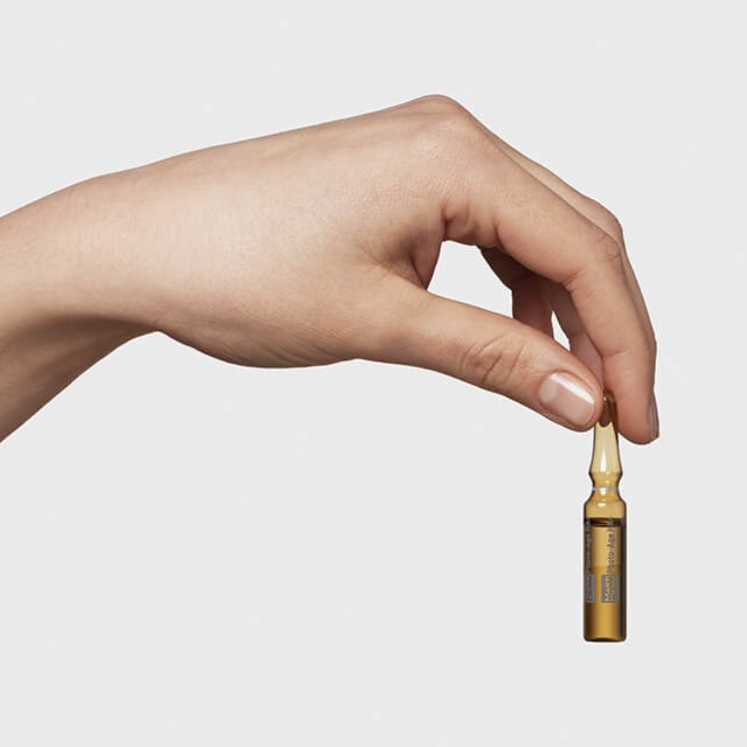 Shake the ampoule lightly.Support the ampoule on a at surface and place the EASY OPEN device on it, pressing gently until you hear a click.Remove the EASY OPEN device and the top of the ampoule. Position the dispenser on the ampoule up to the line.Tip half the content into your hand and apply.Store the ampoule on the base, placing the lid on the dispenser