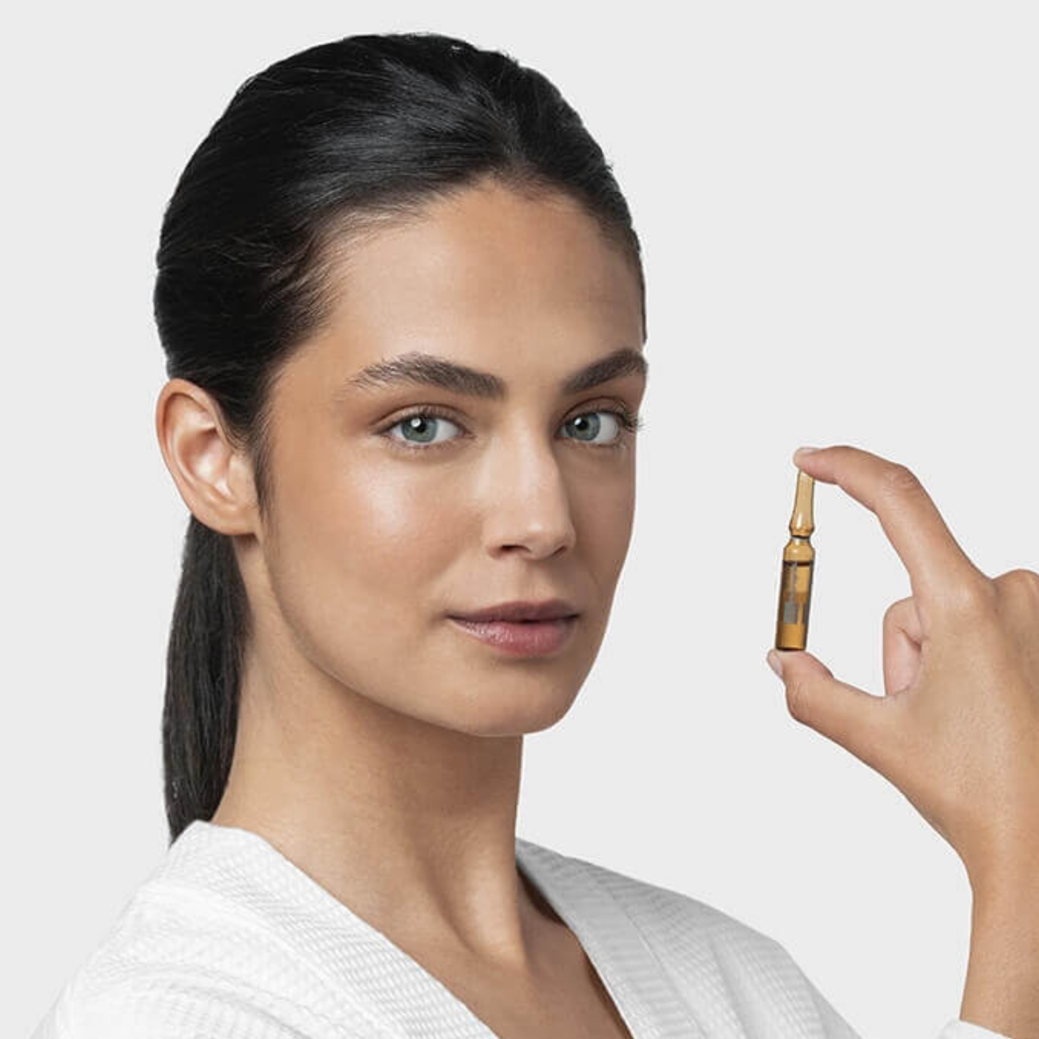 Photo-Age Ampoules is a light texture formula that moisturises and illuminates the skin, smoothing wrinkles appearance to achieve a firmness-looking skin. Its antioxidants help to prevent the appearance of photo-aging signs and to protect the skin from the everyday pollution.