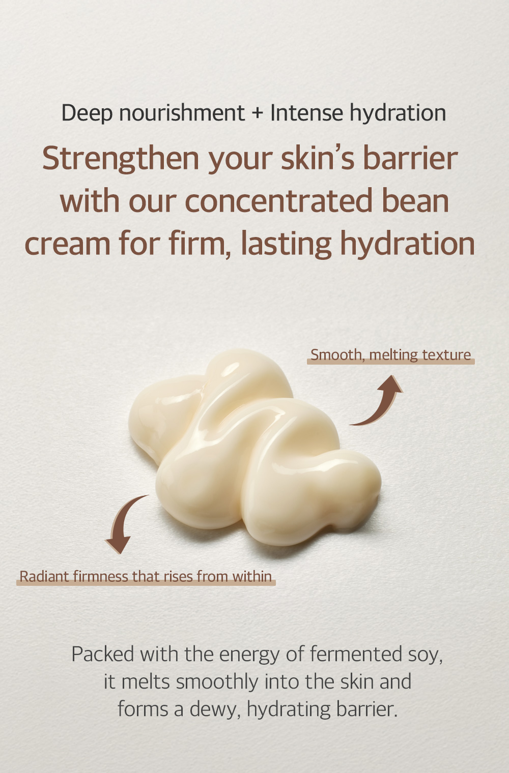 A deeply nourishing K-beauty moisturizer designed to hydrate, protect, and revitalize all skin types. Powered by fermented bean extract rich in amino acids, this cream replenishes essential nutrients while forming a protective barrier that locks in moisture and prevents water loss. Enriched with fermented pomegranate, barley, and pear extracts, it delivers antioxidants and vitamins that smooth skin texture, boost elasticity, and restore natural radiance. Despite its thick, nutrient-rich texture, the cream absorbs quickly without stickiness or greasy residue—making it ideal for oily, dry, or sensitive skin.