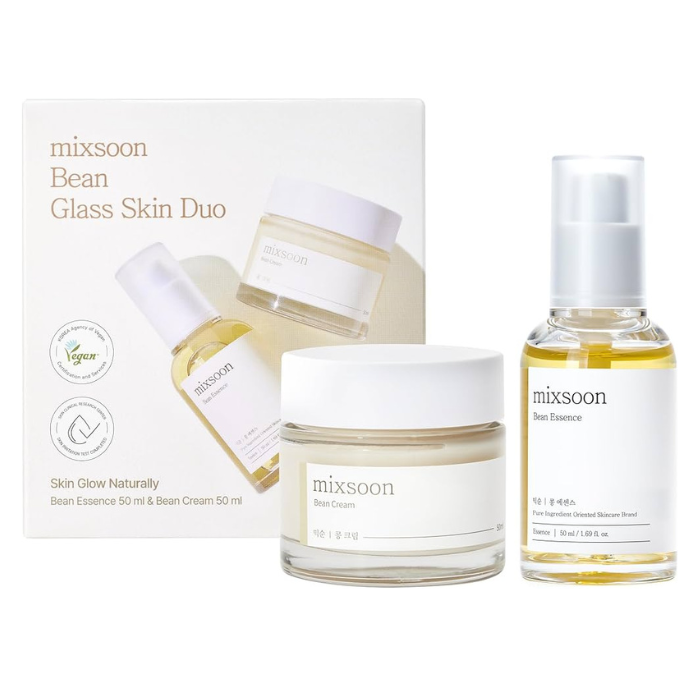 Discover the ultimate K-Beauty secret to radiant, healthy skin with the Mixsoon Bean Glass Skin Duo Set Essence + Cream. This powerful two-step routine combines the gentle exfoliating and hydrating power of the Bean Essence with the deeply moisturizing and balancing Bean Cream.