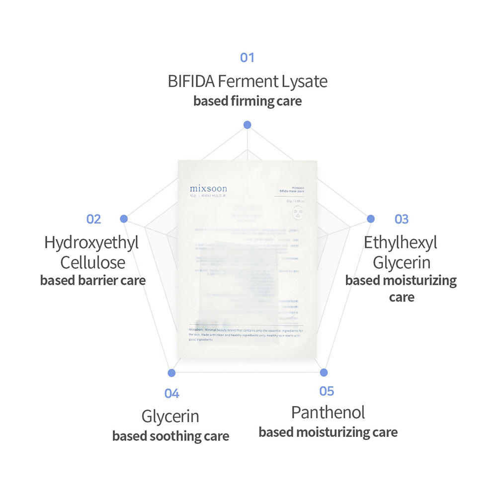 Mixsoon Bifida Mask Pack 25g, Probiotic Sheet with Lactobacillus for Hydration and Skin Balance, 5 pcs