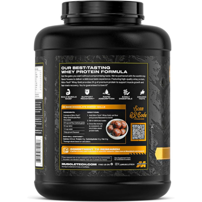 Manufactured through a cold microfiltration process, Nitro Tech Whey Gold retains high biological value undenatured whey protein, supporting efficient muscle protein synthesis. The carefully tested taste ensures that users will enjoy their shakes with every serving. Ideal for building and maintaining lean muscle mass, especially post-workout, this product supports your active lifestyle and training goals.