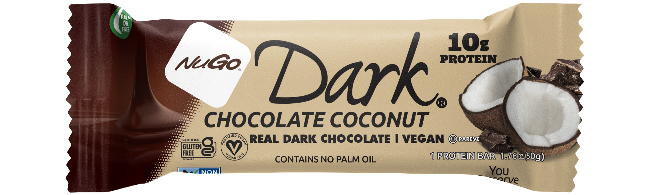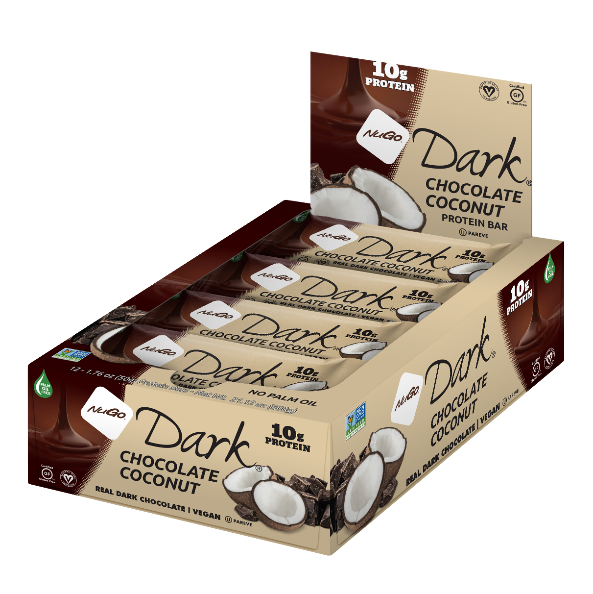 NuGo Dark Chocolate Coconut Bar 50g, 10g Vegan Protein, Gluten Free, Non-GMO, Pack of 12 pcs
