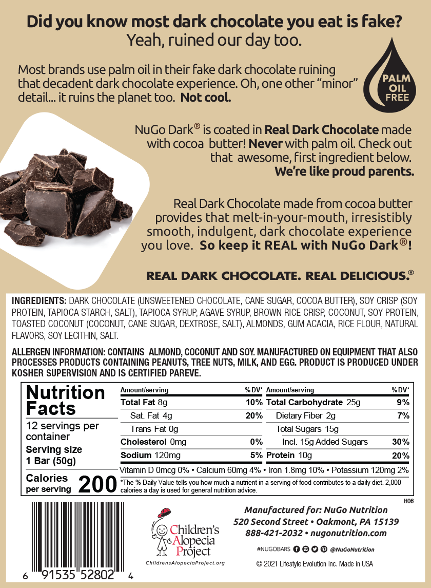 - Real Dark Chocolate Coating made with cocoa butter & no palm oil Sweet