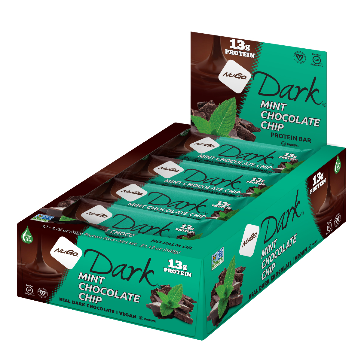 NuGo Dark Mint Chocolate Chip Bar 50g, 13g Protein, Gluten Free, Non-GMO, Pack of 12 pcs-Gallery-1