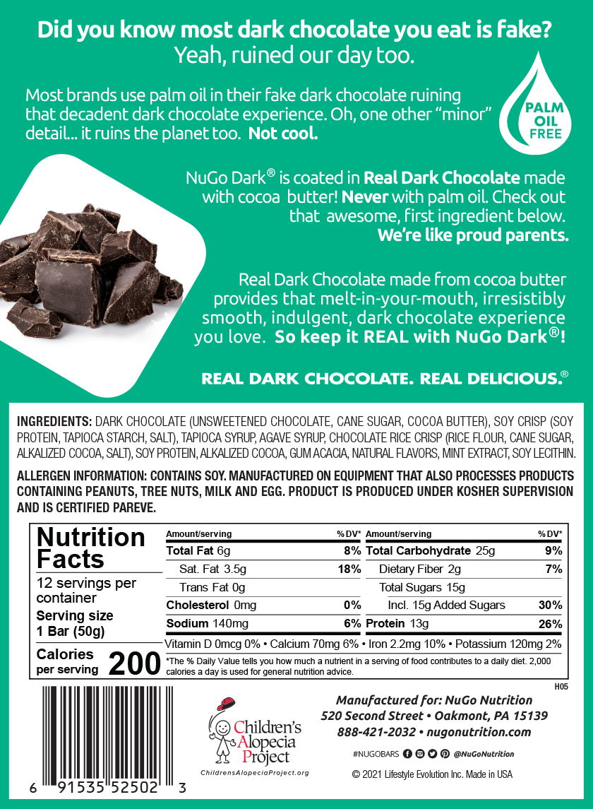 • Coated in Real Dark Chocolate (cocoa butter, no palm oil)