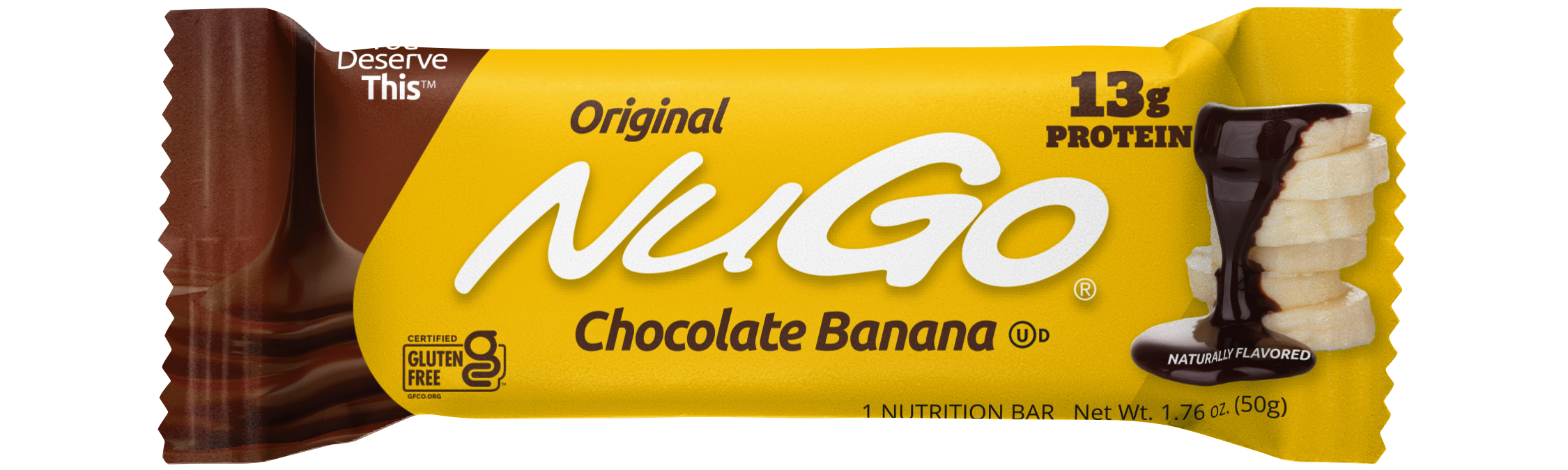 NuGo Original Banana Chocolate Protein Bar 50g, 13g Protein, Gluten Free, Real Milk Chocolate Snack, Pack of 15 pcs
