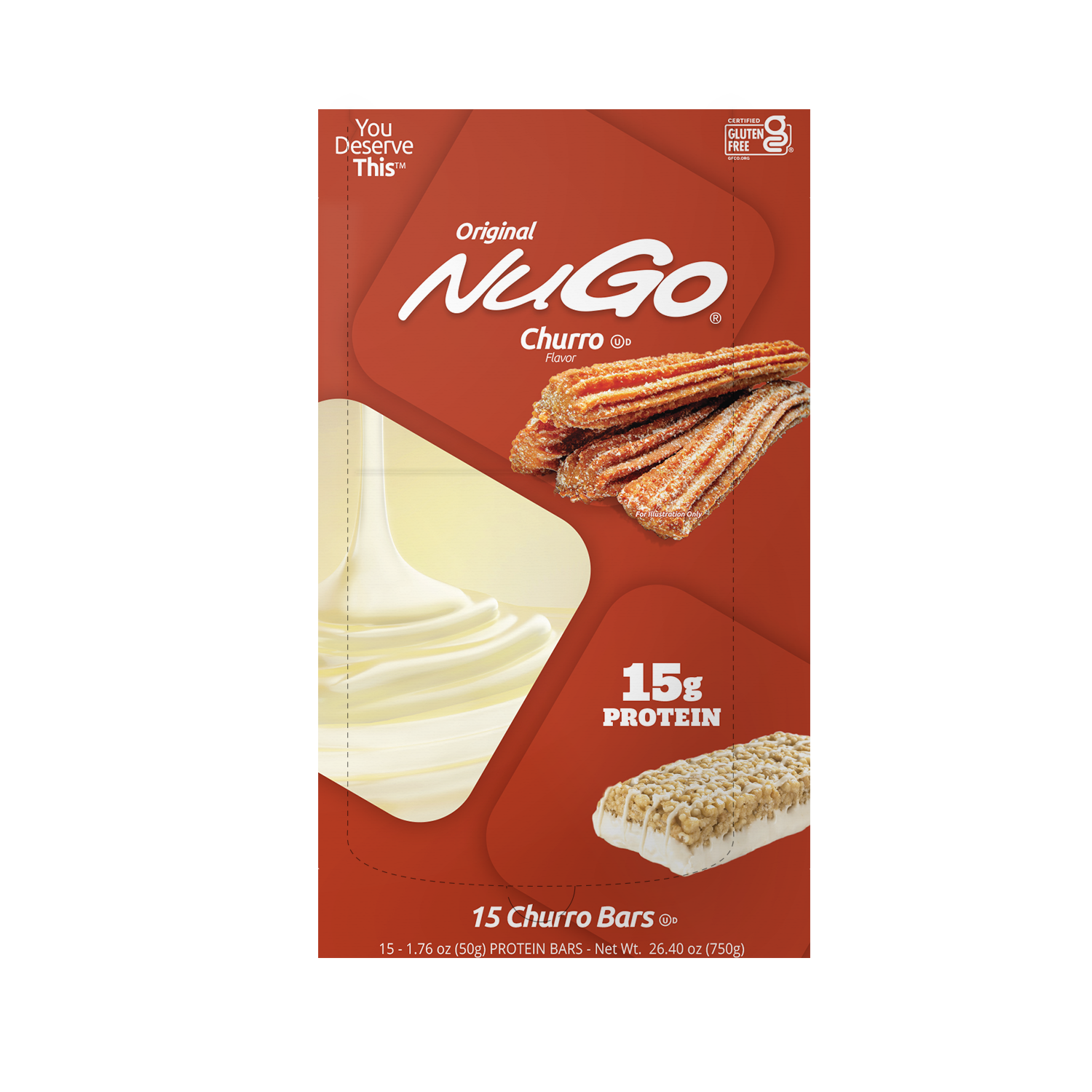 NuGo Original Churro Protein Bar 50g, 15g Protein, Gluten Free, Cinnamon Crunch Yogurt, Pack of 15 pcs