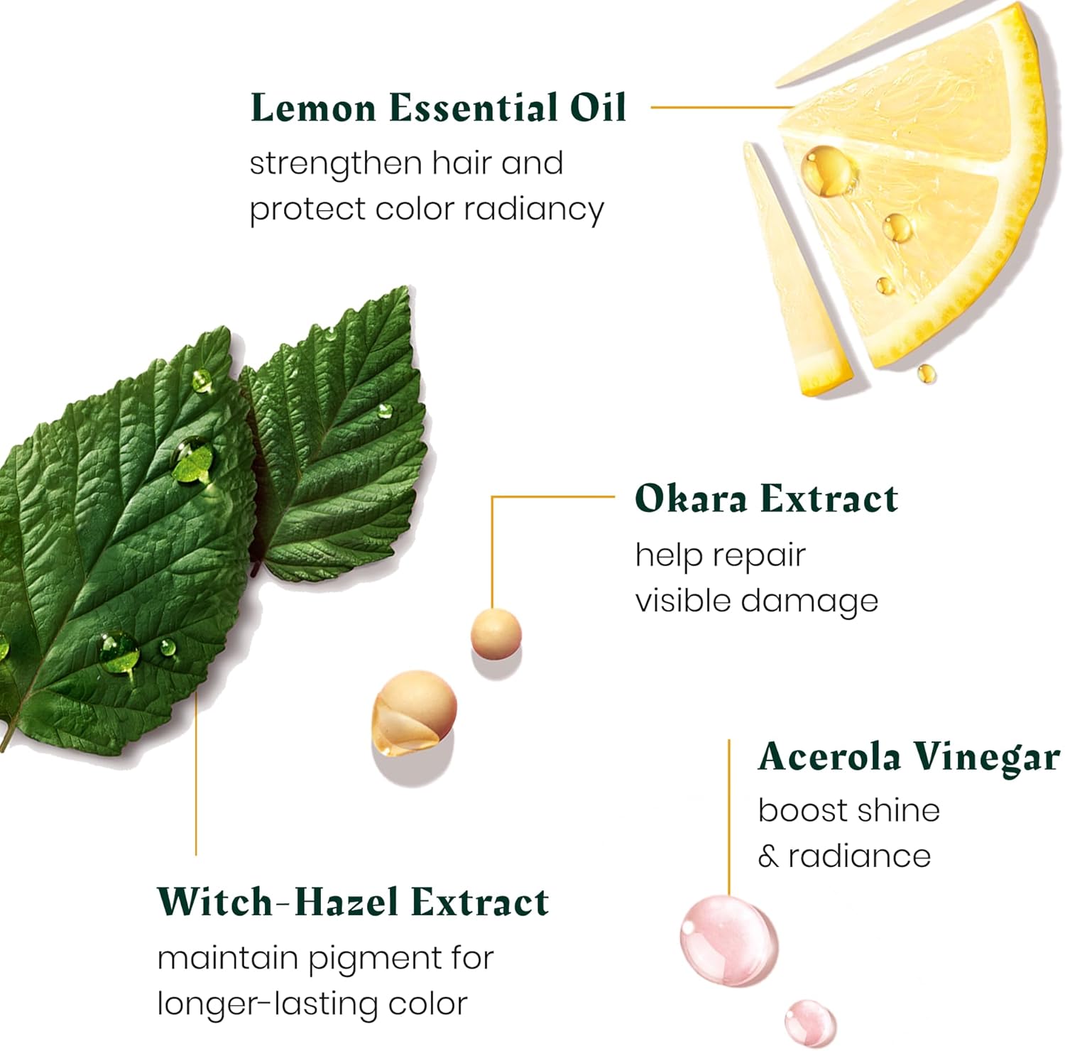 • Repairs & Strengthens – Organic Okara Amino Acids fortify hair structure.