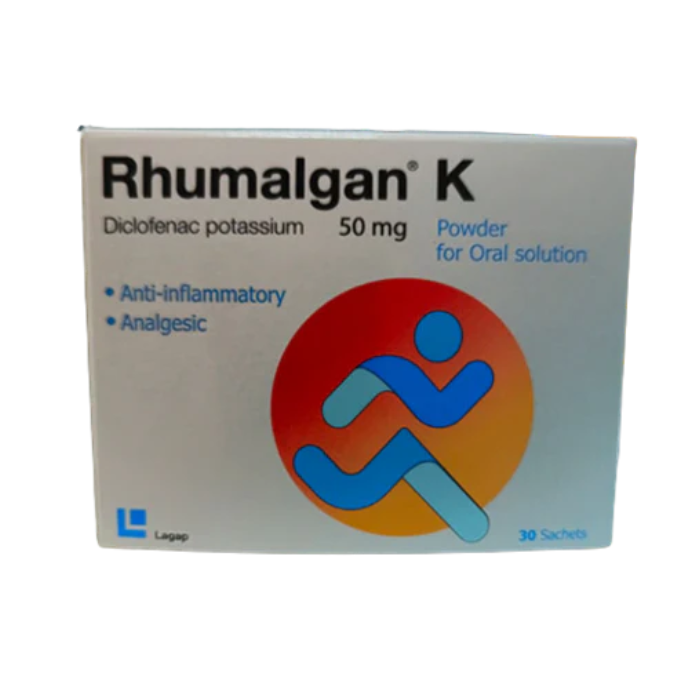 Rhumalgan K 50mg Sachet 30s is a medication designed to help relieve pain and inflammation associated with conditions like arthritis, muscle pain, and joint discomfort.