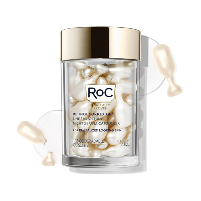 Clinically proven RoC Retinol Correxion Night Serum Capsules visibly smooth fine lines and deep wrinkles. Each capsule delivers a potent dose of pure RoC Retinol and antioxidants for younger-looking skin in just one night.