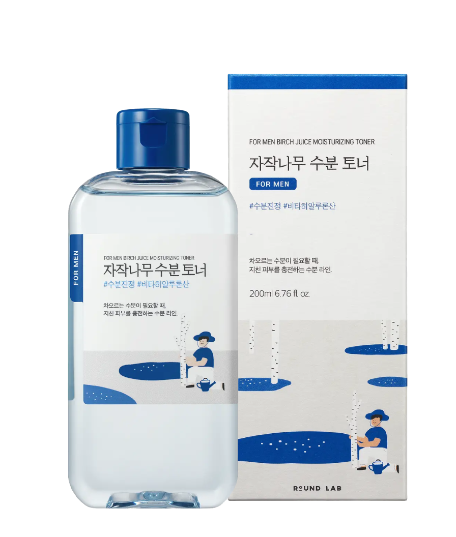 Round Lab Men Birch Juice Moisturizing Toner refreshes and hydrates men’s skin with birch sap, panthenol, and hyaluronic acid. This lightweight, alcohol-free toner soothes irritation, balances oil, and restores moisture—perfect for daily use or after shaving. Suitable for all skin types.