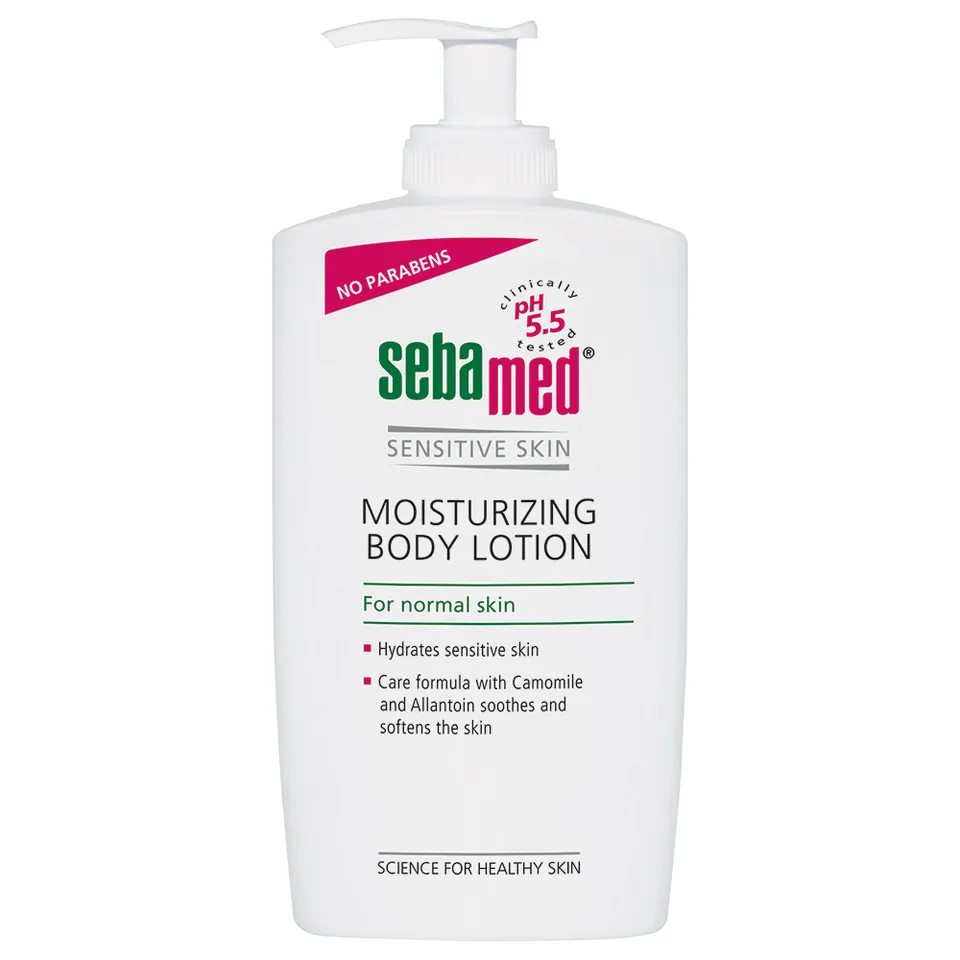Sebamed Body Lotion gives gentle protection to safeguard it against dryness. Its moisturizing and emollient complex with 7% lipids is rapidly absorbed by the skin without greasy residue. Sebamed body Lotion has a mild and pleasant fragrance for the baby's comfort. Free from colorants, nitro-mochus compounds, formaldehyde, nitrosamines, dioxan and phthalates.