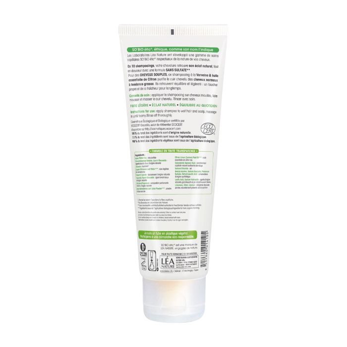 So Bio Etic Organic Supple Hair Shampoo Verbena, Lemon Essential Oil, Normal to Oily Hair, 250ml
