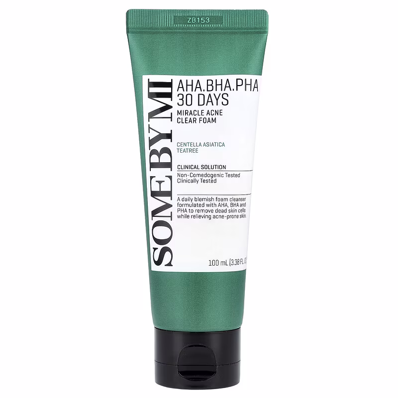 Some By Mi AHA BHA PHA 30 Days Miracle Acne Clear Foam, Daily Deep Cleanser for Acne & Sebum Control - 100ml