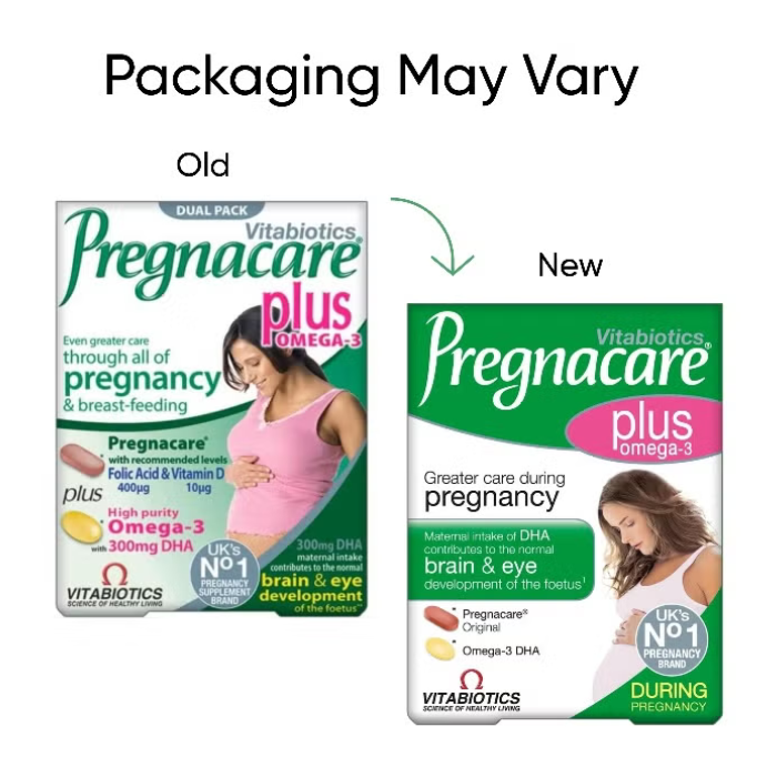 Vitabiotics Pregnacare Plus 56's is a comprehensive nutritional support system developed specifically for women who are pregnant or planning to conceive. Specially designed by experts, this product combines the trusted Pregnacare multivitamin formula with a high-purity Omega-3 DHA capsule. Each pack provides 28 multivitamin tablets and 28 Omega-3 capsules to help supplement the increased nutritional requirements during pregnancy and breastfeeding.