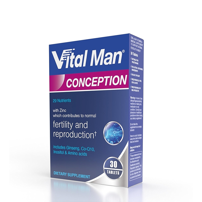 Vital Man Conception is a comprehensive combination of vitamins, minerals & bioactive nutrients to help support all round health and vitality. It also provides specific nutrients which has been chosen for their role in fertility and reproduction. It also helps to maintain healthy testosterone levels in men.