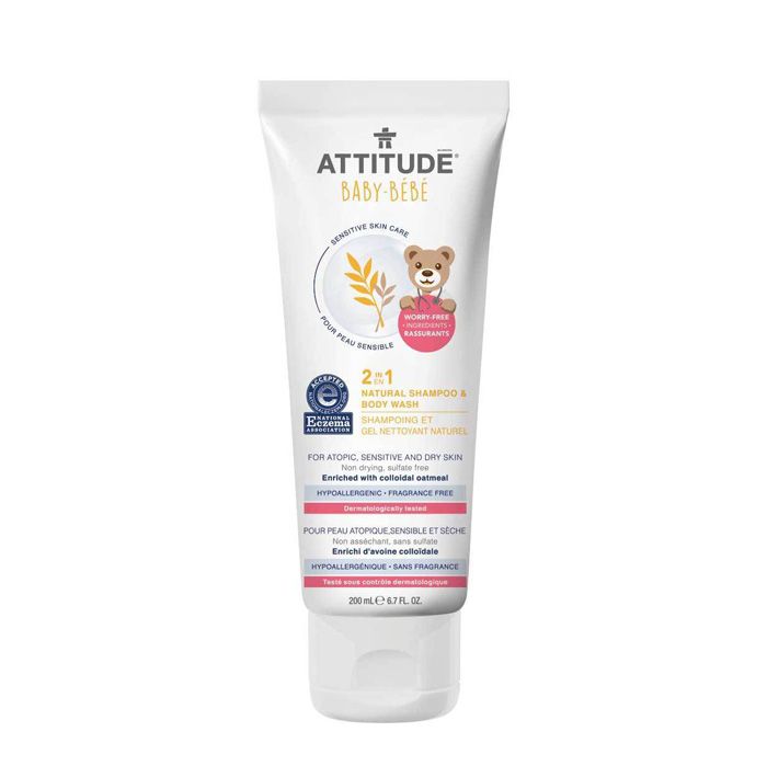 From birth, babies are sponges of knowledge. The more you speak and play with them, the better they will do in school and life! Because their skin is thinner, they're also sponges for what's in their environment. ATTITUDE's Sensitive Skin 2-in-1 Natural Shampoo & Body Wash is formulated for babies with exceptionally delicate exteriors. Our sulfate- and the worry-free formula is made to keep their extra sensitive skin extra happy using natural ingredients like calming colloidal oatmeal to relieve dry, irritated scalps. It's certified by the National Eczema Association and EWG Verified because we only want the best for you and your family.