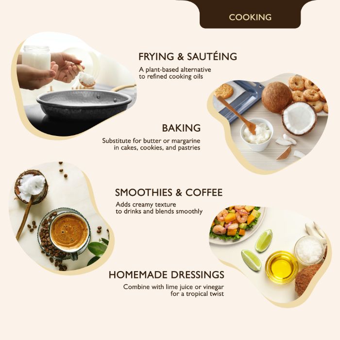 This product is ideal as a coconut oil for skin or hair, as well as for cooking purposes. It can work wonders as a hydrating face oil, aromatherapy carrier oil or as a mask to protect hair against environmental damage.