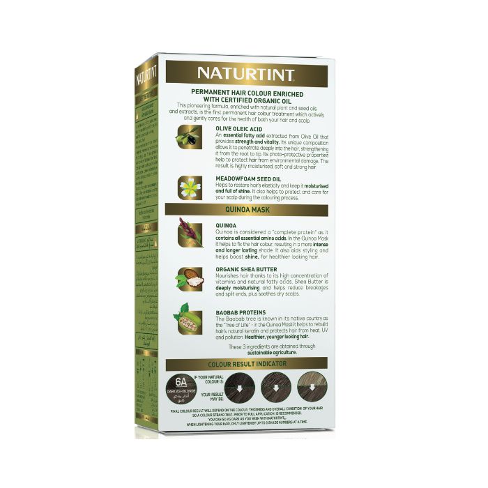 Naturtint 6A Dark Ash Blonde, Ammonia-Free Permanent Hair Color with Quinoa Mask, 165ml