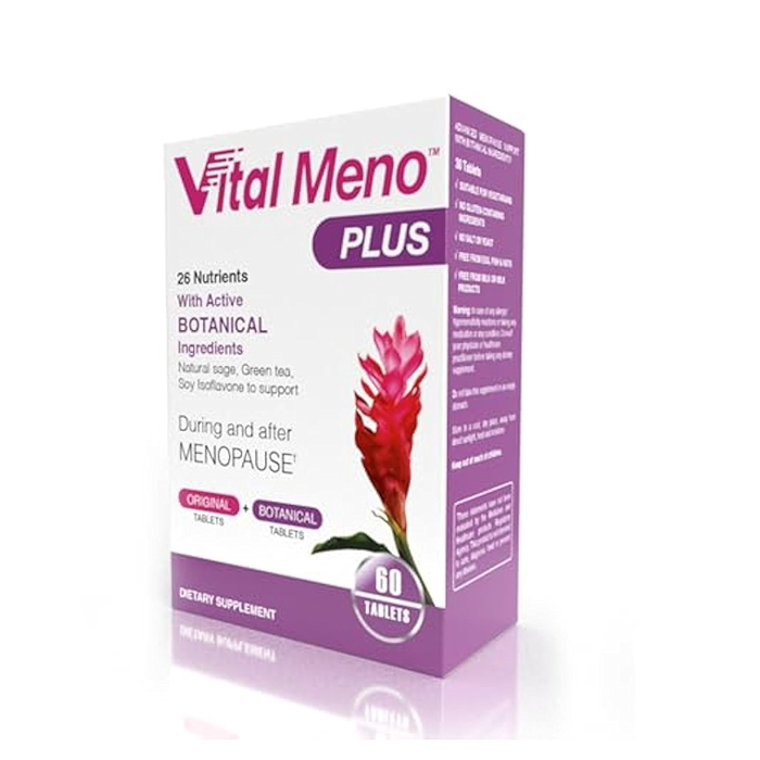 Vital Meno Plus includes a Vital Meno formula plus an active botanical tablet which supports female health during and after the menopause.